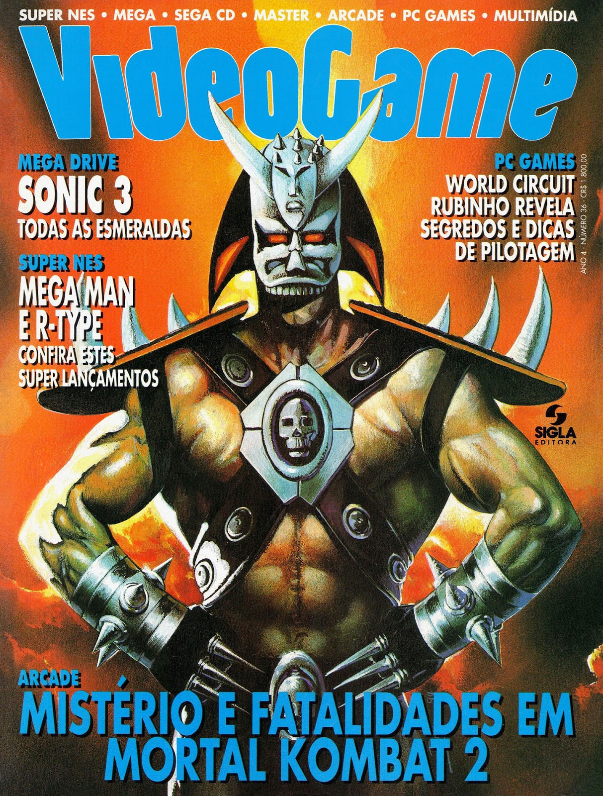 Na capa, o temível e terrível Shao Kahn, que tirou o sono de muitos viciados em Mortal Kombat II, que nesta edição, foi destaque por ser um dos lançamentos mais aguardados para fliperamas na época!